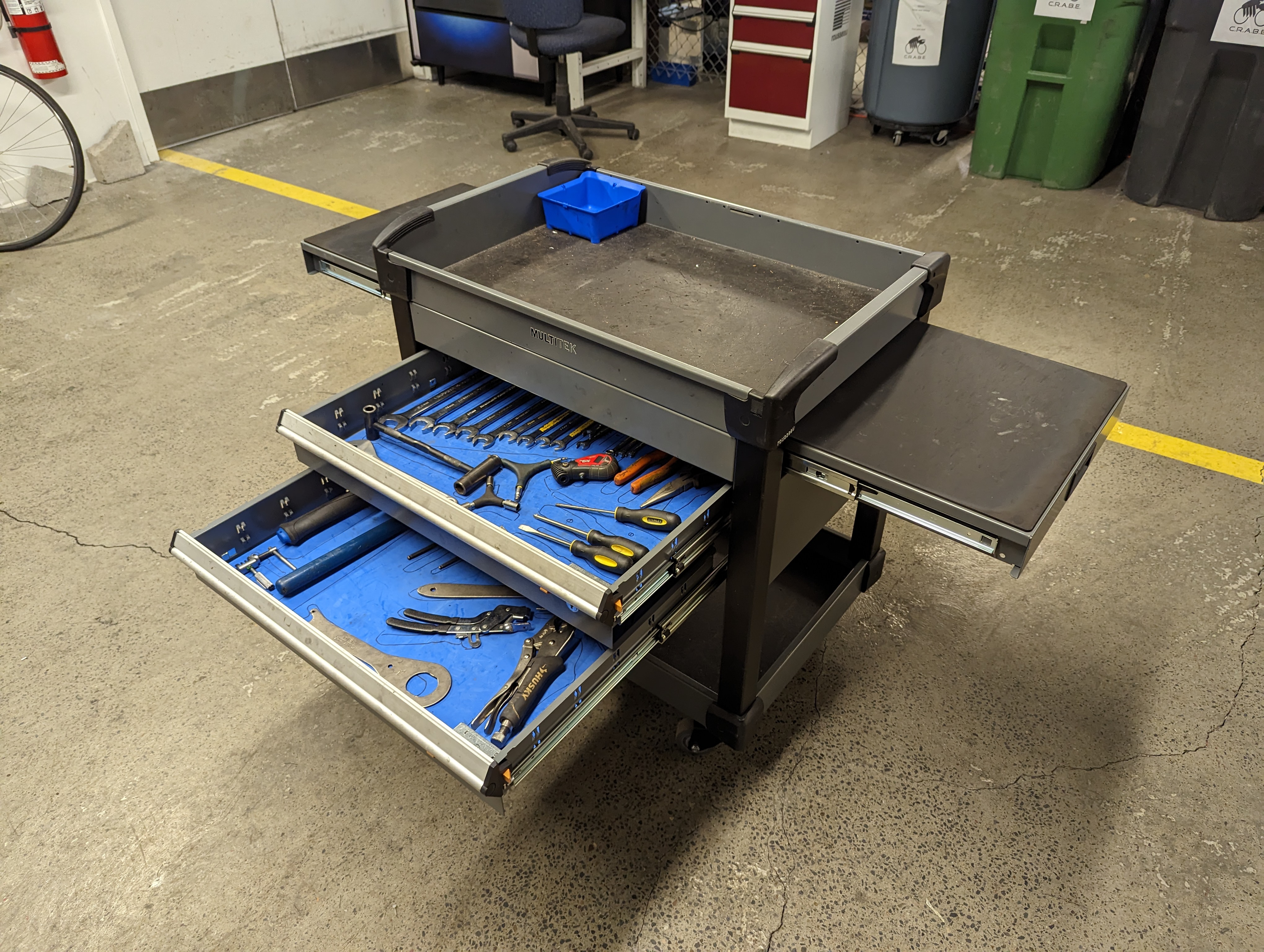 Les temps changent et les vélos aussi ! Pour suivre leur évolution et que les étudiants puisse bricoler eux-mêmes leur vélo électrique, nous nous sommes équipés en conséquence. À votre disposition, fer à souder, multimètre, alimentation de laboratoire et bien d’autres !